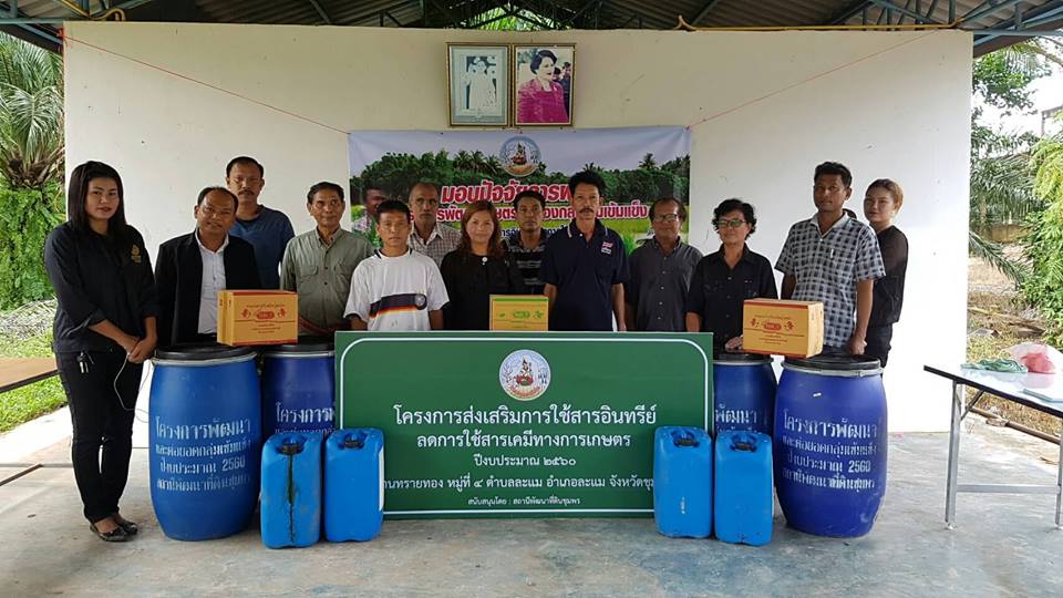 วันอังคารที่ 10 มกราคม 2560 สถานีพัฒนาที่ดินชุมพร ฝ่ายวิชาการเพื่อการพัฒนาที่ดินที่ 2นำโดยนายวิโรจน์ ชูช่วย เจ้าพนักงานการเกษตรอาวุโส พร้อมด้วย น.ส.ณัฐรดา ภานุมาศ นักวิชาการเกษตรปฏิบัติการ ส่งสุขปีใหม่ 2560 ฟื้นฟูพื้นที่เกษตรหลังน้ำท่วม มอบปัยจัยการผลิตแก่กลุ่มเข้มแข็งฯ (ต่อยอด) โครงการส่งเสริมการใช้สารอินทรีย์ลดการใช้สารเคมีทางการเกษตร ปีงบประมาณ 2560ณ ศูนย์หมู่บ้าน ม.12 ต.ละแม อ.ละแม จ.ชุมพร