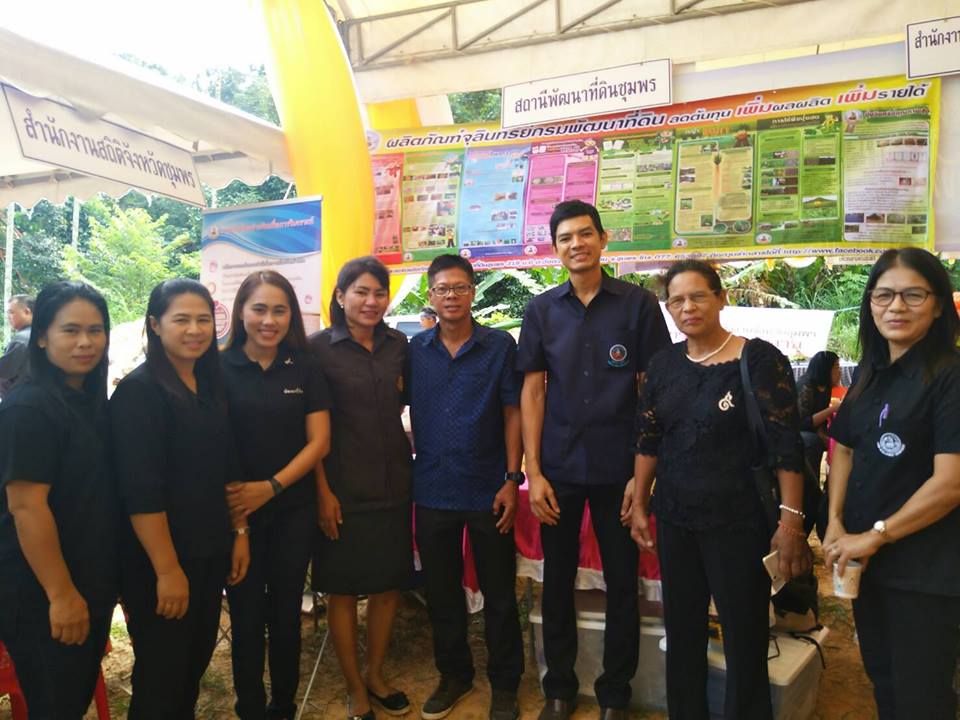 วันพุธที่14 มิถุนายน 2560 ฝ่ายวิชาการเพื่อการพัฒนาที่ดินที่ 2 สถานีพัฒนาที่ดินชุมพร นำโดย นายวิโรจน์ ชูช่วย เจ้าพนักงานการเกษตรอาวุโส พร้อมด้วยเจ้าหน้าที่ และฝ่ายวิเคราะห์ดิน สำนักงานพัฒนาที่ดินเขต 11 ร่วมบริการประชาชน โครงการจังหวัดพบประชาชนจังหวัดชุมพร ประจำปี 2560 เพื่อบำบัดทุกข์ บำรุงสุข สร้างรอยยิ้ม โดยมีนายณรงค์ พลละเอียด ผู้ว่าราชการจังหวัดชุมพร เป็นประธานเปิดงาน พร้อมด้วยหัวหน้าส่วนราชการต่างๆ ณศูนย์หมู่บ้านบ้านห้วยทรายขาว หมู่ 13 ตำบลหาดยาย อำเภอหลังสวน จังหวัดชุมพร