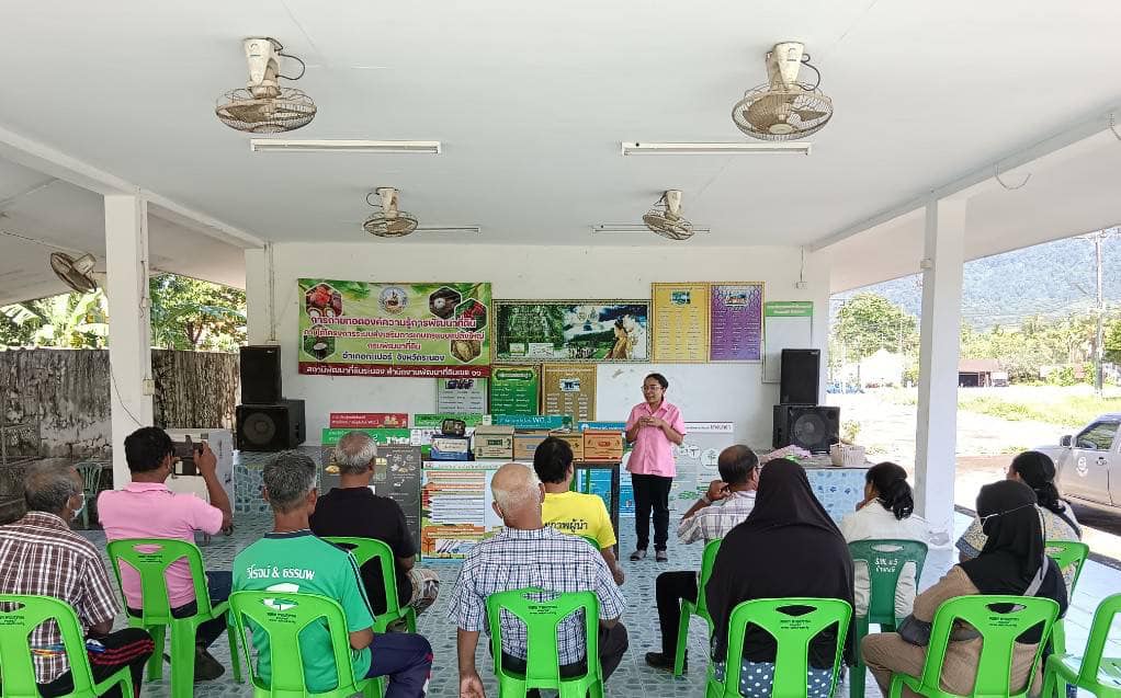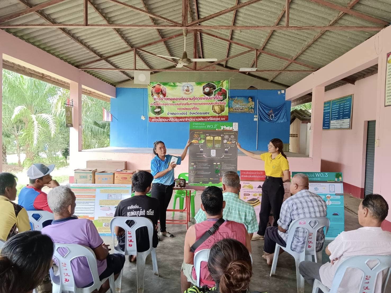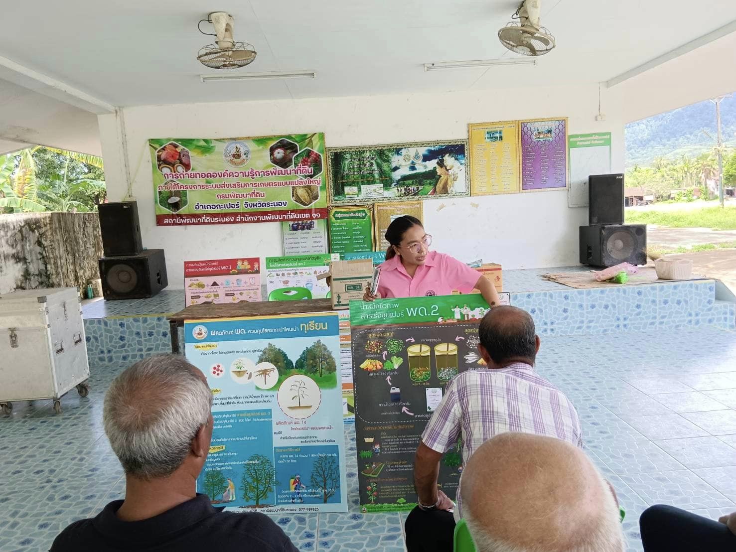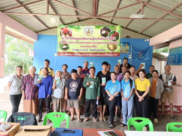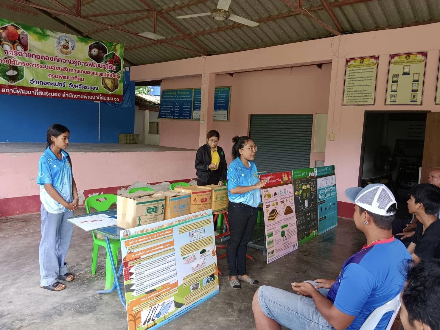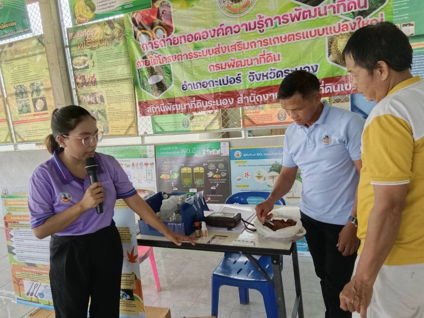 วันอังคาร ที่ 19 กันยายน 2566 นางสาววชิราพร ดิษฐ์ราชา นักวิชาการเกษตรปฏิบัติการ สถานีพัฒนาที่ดินระนอง จัดอบรมการถ่ายทอดองค์ความรู้การพัฒนาที่ดิน ภายใต้โครงการระบบส่งเสริมเกษตรแบบแปลงใหญ่ กรมพัฒนาที่ดิน ประจำปีงบประมาณ 2566 เพื่อให้เกษตรกรที่เข้าร่วมฯ มีความรู้ความเข้าใจด้านการพัฒนาที่ดิน การเก็บตัวอย่างดิน และสามารถพัฒนาคุณภาพดินในพื้นที่แปลงเกษตรกรให้มีศักยภาพ มีความเหมาะสมในการผลิตพืช และใช้ประโยชน์ที่ดินได้อย่างยั่งยืน ณ ศาลาอเนกประสงค์ประจำหมู่บ้าน หมู่ที่ 5 ตำบลกะเปอร์ อำเภอกะเปอร์ จังหวัดระนอง