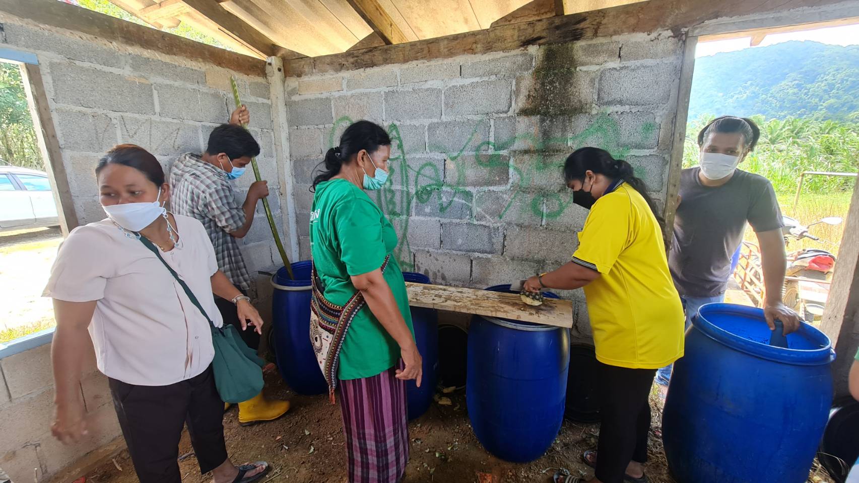 วันอังคารที่ 28 มิถุนายน 2565 นางพรทิพย์ สวนชำนิ นักวิชาการเกษตรชำนาญการ พร้อมด้วยเจ้าหน้าที่สถานีพัฒนาที่ดินระนอง ลงพื้นที่หมู่ที่ 2 ตำบลนาคา และหมู่ที่ 6 ตำบลกำพวน อำเภอสุขสำราญ จังหวัดระนอง จัดอบรมด้านการจัดการดินและปุ๋ย การจัดการพื้นที่ความเหมาะสมสำหรับปลูกพืชเศรษฐกิจ และสาธิตการผลิตน้ำหมักชีวภาพ (จากสารเร่งซุปเปอร์ พ.ด. 2) โครงการถ่ายทอดองค์ความรู้การพัฒนาที่ดิน ภายใต้โครงการระบบส่งเสริมเกษตรแบบแปลงใหญ่ ประจำปีงบประมาณ 2565 พร้อมทั้งสนับสนุนวัสดุปูนเพื่อปรับปรุงบำรุงดินในพื้นที่ดินกรด (โดโลไมท์) ให้กับสมาชิกที่เข้าร่วม เพื่อให้เกษตรกรในพื้นที่แปลงใหญ่สามารถนำความรู้ไปปรับใช้ในพื้นที่ของตนเองให้เกิดผลได้อย่างถูกต้อง สามารถลดต้นทุน เพิ่มผลผลิตให้สามารถแข่งขันได้และมีผลผลิตทางการเกษตรที่มีคุณภาพตรงตามความต้องการของตลาด ส่งผลให้เกษตรกรมีรายได้และความเป็นอยู่ที่ดีขึ้น