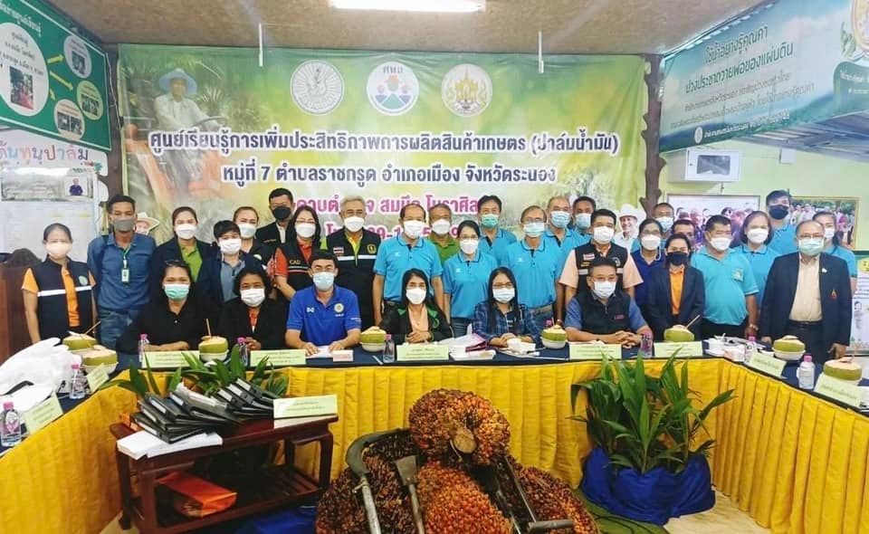 วันพฤหัสบดีที่ 30 มิถุนายน 2565 นายอัมพร พวงพวา ผู้อำนวยการสถานีพัฒนาที่ดินระนอง พร้อมด้วยเจ้าหน้าที่สถานีพัฒนาที่ดินระนองในฐานะที่เป็นหน่วยงานภาคี เข้าร่วมให้ข้อมูลการประกวดแปลงใหญ่ดีเด่นระดับเขต ประจำปี 2565 โดยมีคณะกรรมการจากหน่วยงานสังกัดกระทรวงเกษตรและสหกรณ์ ระดับเขต ลงพื้นที่จัดเก็บข้อมูลแปลงใหญ่ในระดับพื้นที่ เพื่อตัดสินการประกวดแปลงใหญ่ดีเด่นระดับเขตประจำปี 2565 โดยมี นายสุรพันธ์ เทียนไพร ประธานกลุ่มแปลงใหญ่ปาล์มน้ำมัน ม.7 ต.ราชกรูด อ.เมือง จ.ระนอง พร้อมด้วย นายอำนวย แออุดม เกษตรจังหวัดระนอง นายชยุต เลียนกาญนากร เกษตรอำเภอเมืองระนอง หัวหน้ากลุ่ม/ฝ่าย เจ้าหน้าที่สำนักงานเกษตรจังหวัดระนอง​ และผู้เกี่ยวข้อง คณะกรรมการและสมาชิกกลุ่มฯ ร่วมกันนำเสนอผลการดำเนินงานกลุ่มแปลงใหญ่ปาล์มน้ำมันฯ และข้อมูลการบริหารจัดการด้านต่างๆ พร้อมทั้งจัดแสดงผลิตภัณฑ์ของกลุ่มแปลงใหญ่ปาล์มน้ำมันฯ โดยมีผู้เข้าร่วมจำนวน 100 ราย ณ ที่ทำการกลุ่มแปลงใหญ่ปาล์มน้ำมัน ม.7 ต.ราชกรูด อ.เมืองระนอง จ.ระนอง