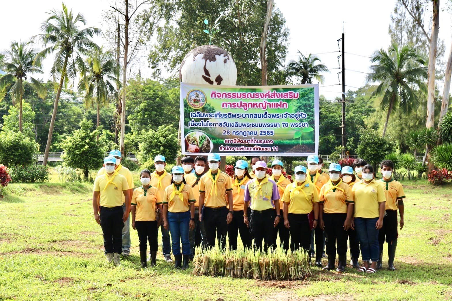 วันพุธที่ 27 กรกฎาคม 2565 นายอัมพร พวงพวา วิทยากรจิตอาสา 904 “หลักสูตรหลักประจำ”รุ่นที่ 4/62 “เป็นเบ้าเป็นแม่พิมพ์” รหัส 4A-428 ผู้อำนวยการสถานีพัฒนาที่ดินระนอง พร้อมด้วยจิตอาสา และเจ้าหน้าที่สถานีพัฒนาที่ดินระนอง รวมจำนวน 24 คน จัดกิจกรรมรณรงค์ส่งเสริมการปลูกหญ้าแฝกจำนวน 100,000 กล้าเพื่อเฉลิมพระเกียรติพระบาทสมเด็จพระเจ้าอยู่หัว เนื่องในโอกาสวันเฉลิมพระชนมพรรษา 70 พรรษา 28 กรกฎาคม 2565 เพื่อรณรงค์ให้เกษตรกรและประชาชน รู้จักหญ้าแฝก และเข้าใจวิธีการใช้ประโยชน์จากหญ้าแฝก ในการอนุรักษ์ดินและน้ำ และปรับปรุงสภาพสิ่งแวดล้อมในพื้นที่ที่มีปัญหาการชะล้างพังทลายของดินสูง ทำให้สามารถป้องกันการชะล้างพังทลายของดินดียิ่งขึ้น ณ บริเวณพื้นที่คันดินเสี่ยงภัยพิบัติทางการเกษตร กิจกรรมอนุรักษ์ดินและน้ำ สถานีพัฒนาที่ดินระนอง ตำบลราชกรูด อำเภอเมือง จังหวัดระนอง
