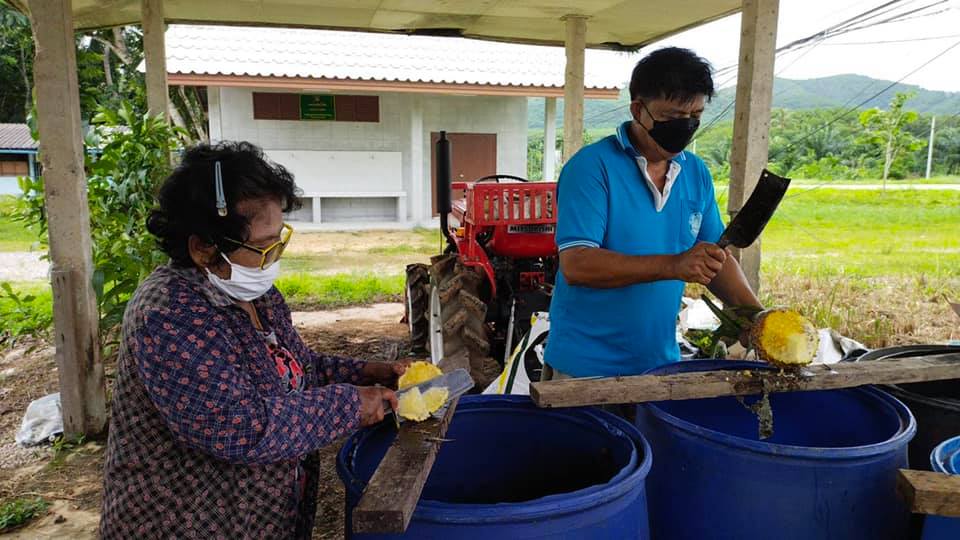 วันอังคารที่ 27 กรกฎาคม 2564 นายนพดล อุบลเลิศ เจ้าพนักงานการเกษตรปฏิบัติงาน ฝ่ายวิชาการเพื่อการพัฒนาที่ดินที่ 2 พร้อมด้วยเจ้าหน้าที่สถานีพัฒนาที่ดินระนอง ลงพื้นที่สาธิตการผลิตน้ำหมักชีวภาพ(พด.2) พร้อมทั้งสนับสนุนวัสดุการเกษตรที่ใช้สำหรับผลิตน้ำหมักชีวภาพ (พด.2) โครงการส่งเสริมและพัฒนาที่ดินทำกิน ภายใต้นโยบายที่ดินแห่งชาติ (คทช.) ณ ศาลาอเนกประสงค์บ้านบางสองรา ตำบลบางใหญ่ อำเภอกระบุรี จังหวัดระนอง