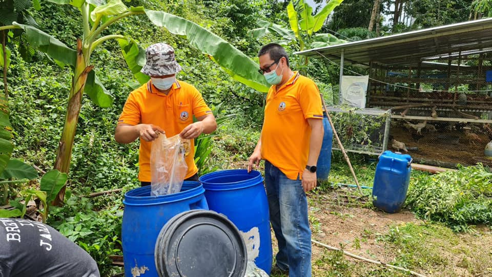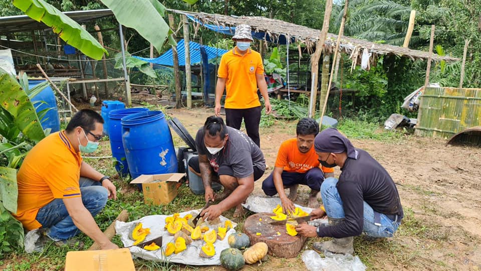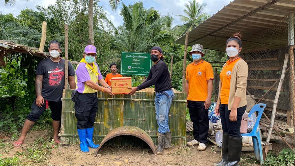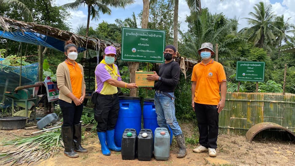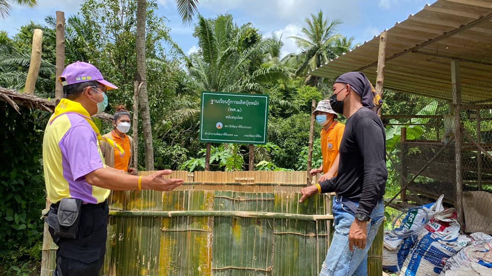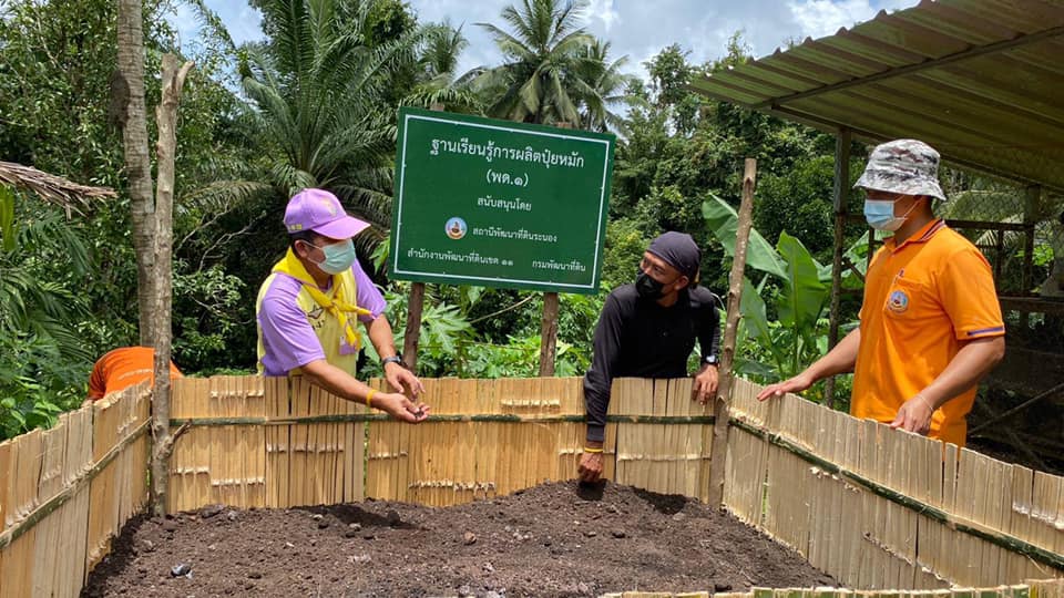 วันพฤหัสบดีที่ 5 สิงหาคม 2564 นายอัมพร พวงพวา วิทยากรจิตอาสา 904 รหัส 4A-428 ตำแหน่ง ผู้อำนวยการสถานีพัฒนาที่ดินระนอง พร้อมด้วยเจ้าหน้าที่สถานีพัฒนาที่ดินระนอง ลงพื้นที่ติดตามเยี่ยมเยียนโคกหนองนาต้นแบบ นายสุวรรณ ยอดแก้ว หมู่ที่ 7 ตำบลมะมุ อำเภอกระบุรี จังหวัดระนอง ผู้ผ่านการอบรมโครงการพระราชทานในพระบาทสมเด็จพระเจ้าอยู่หัว “โคก หนอง นา แห่งน้ำใจและความหวัง” กรมราชทัณฑ์ เพื่อจัดทำฐานเรียนรู้การผลิตปุ๋ยหมัก(พด.1) และฐานเรียนรู้น้ำหมักชีวภาพ(พด.2) ให้คำแนะนำในการปรับปรุงบำรุงดิน สาธิตการผลิตน้ำหมักชีวภาพ(พด.2) พร้อมทั้งสนับสนุนปัจจัยการผลิต เพื่อให้ผู้พ้นโทษสามารถพึ่งพาตนเองได้ ช่วยเหลือผู้อื่นที่ได้รับความเดือดร้อน และสามารถดำรงอยู่ได้อย่างมั่นคงและยั่งยืน ต่อไป