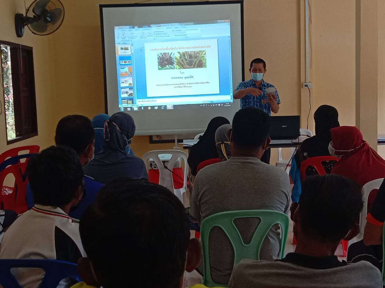 วันพฤหัสบดีที่ 21 มกราคม 2564 นายอัมพร พวงพวา ผู้อำนวยการสถานีพัฒนาที่ดินระนอง มอบหมายให้นายนพดล อุบลเลิศ เจ้าพนักงานการเกษตรปฏิบัติงานเข่าร่วมเป็นวิทยากรอบรมเกษตรกรกิจกรรมถ่ายทอดความรู้ให้เกษตรกร เน้นการพัฒนาคุณภาพ การตลาด และการบริหารจัดการกลุ่ม (แปลงใหญ่ ปี 2562 และปี 2563) ภายใต้โครงการระบบส่งเสริมการเกษตรแบบแปลงใหญ่ ของสำนักงานเกษตรอำเภอสุขสำราญ ซึ่งมีวัตถุประสงค์เพื่อสนับสนุนให้เกษตรกรมีการรวมกลุ่มทำการผลิตสินค้าเกษตร ด้านสินค้าพืช ปศุสัตว์ และประมง มีการบริหารจัดการร่วมกัน เพื่อให้เกิดการรวมกันผลิตและรวมกันจำหน่าย โดยมีตลาดรองรับที่แน่นอน และเพื่อให้เกษตรกรสามารถลดต้นทุนการผลิตและมีผลผลิตต่อหน่วยเพิ่มขึ้น รวมทั้งผลผลิตมีคุณภาพได้มาตรฐาน ณ ที่ทำการกลุ่มแปลงใหญ่ปาล์มน้ำมัน หมู่ที่ 6 ตำบลกำพวน อำเภอสุขสำราญ จังหวัดระนอง