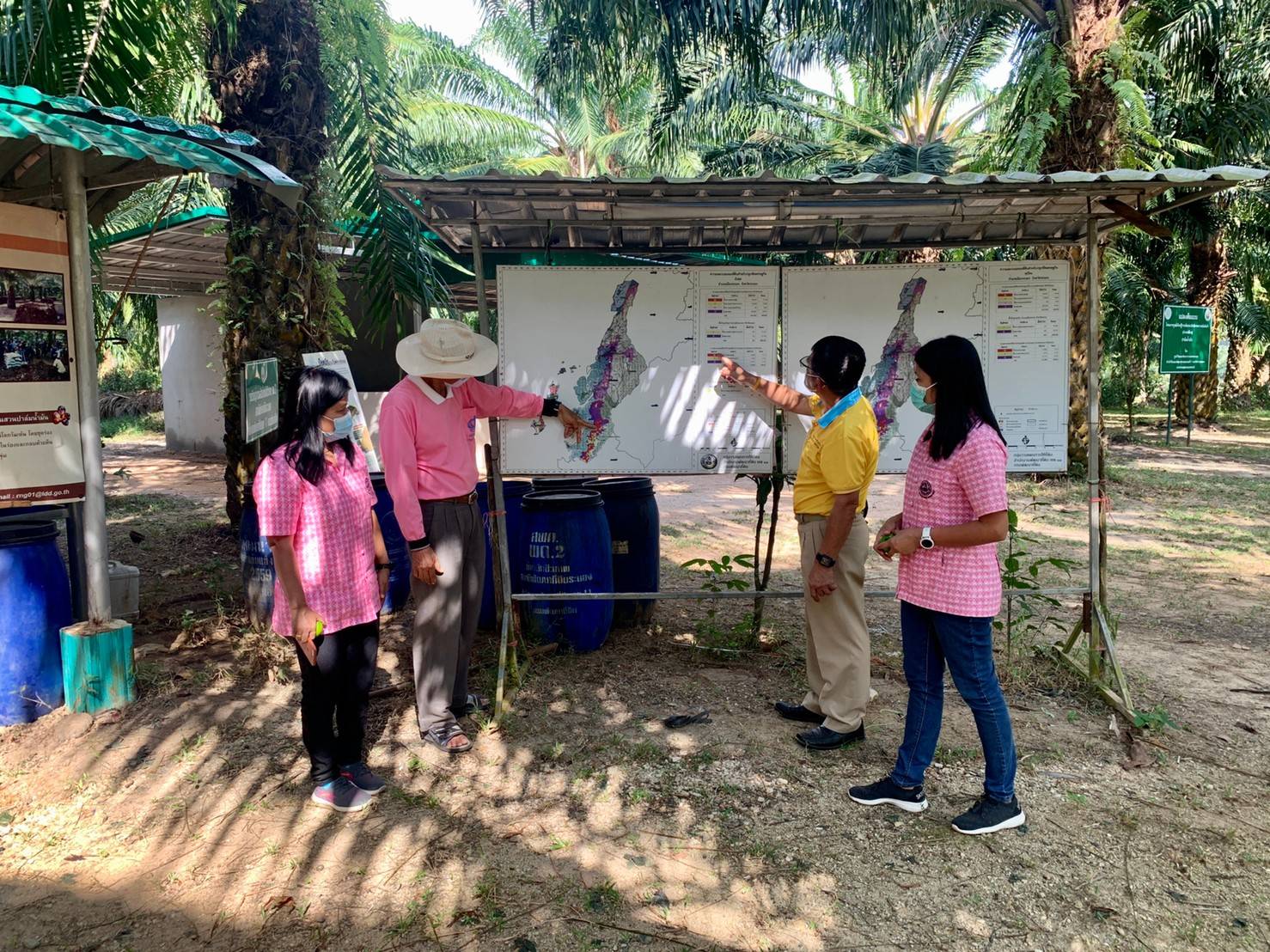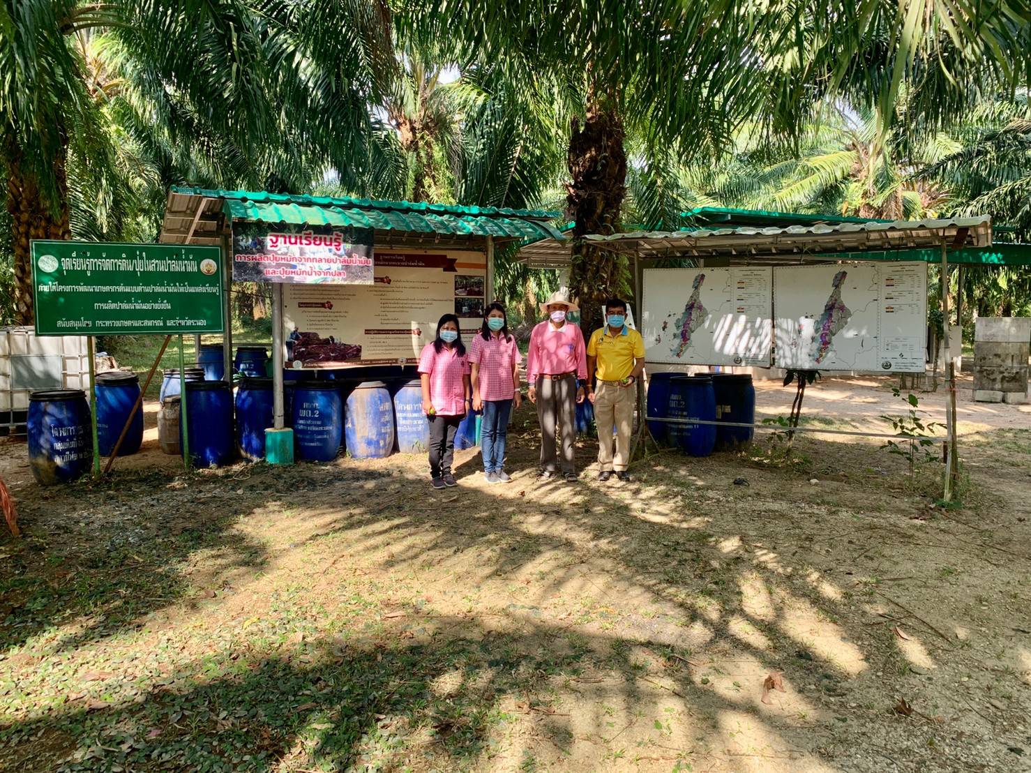 วันอังคารที่ 26 มกราคม 2564 นายอัมพร พวงพวา ผู้อำนวยการสถานีพัฒนาที่ดินระนอง พร้อมด้วยเจ้าหน้าที่ฝ่ายวิชาการสถานีพัฒนาที่ดินระนอง ลงพื้นเยี่ยมศูนย์เรียนรู้การเพิ่มประสิทธิภาพการผลิตสินค้าเกษตร (ศพก.ปาล์มน้ำมัน) ของดาบตำรวจสมนึก โมราศิลป์ หมู่ที่ 7 ตำบลราชกรูด อำเภอเมือง จังหวัดระนอง เพื่อให้คำแนะนำเพิ่มเติมในการทำปุ๋ยหมัก น้ำหมักชีวภาพ และวิธีการปรับปรุงบำรุงดินในการปลูกพืช เพื่อช่วยในการลดต้นทุนและเพิ่มผลผลิต เพิ่มศักยภาพในการ พัฒนาศูนย์เรียนรู้ด้านการพัฒนาที่ดินในพื้นที่ต่อไป