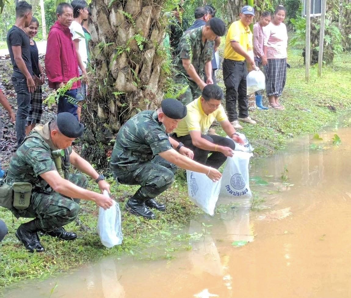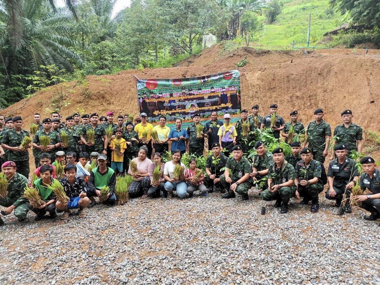 วันที่ 7 มิถุนายน 2566 นายอัมพร พวงพวา ผู้อำนวยการสถานีพัฒนาที่ดินระนอง พร้อมด้วยนายนพดล อุบลเลิศ เจ้าพนักงานการเกษตรปฏิบัติงาน ต้อนรับคณะฝ่ายกิจการพลเรือน ศูนย์ปฏิบัติการกองทัพบก ซึ่งได้เดินทางมาเพื่อศึกษาดูงานที่ศูนย์เรียนรู้เศรษฐกิจพอเพียงชุมชนบ้านบางไทร พร้อมทั้งร่วมกันปลูกป่าอนุรักษ์ทรัพยากรธรรมชาติ และปลูกหญ้าแฝกเพื่อเป็นอนุรักษ์ดินและน้ำ และป้องกันการชะล้างพังทะลายของหน้าดิน ภายใต้กิจกรรมจัดระเบียบพื้นที่ชายแดนและหมู่บ้านพัฒนาตัวอย่าง โครงการหมู่บ้านเข้มแข็งคู่ขนานตามแนวชายแดน ครั้งที่ 2 ประจำปีงบประมาณ 2566 เพื่อสร้างความมั่นคงตามแนวชายแดน ให้มีความเข้มแข็งและเป็นรูปธรรม และเพื่อพัฒนาความสัมพันธ์อันดี ระหว่างประเทศไทย-พม่า ให้เกิดการแลกเปลี่ยนเรียนรู้วิถีชีวิต และขนบธรรมเนียม ประเพณีและวัฒนธรรม โดยใช้หลักปรัชญาของเศรษฐกิจพอเพียง และให้พี่น้องประชาชนของทั้ง 2 ประเทศ สามารถไปมาหาสู่กันได้อย่างปกติ ตลอดจนการช่วยเหลืองานทางราชการในการแก้ไขปัญหาตามแนวชายแดนร่วมกัน ณ ศูนย์เรียนรู้เศรษฐกิจพอเพียงชุมชนบ้านบางไทร ตำบลมะมุ อำเภอกระบุรี จังหวัดระนอง